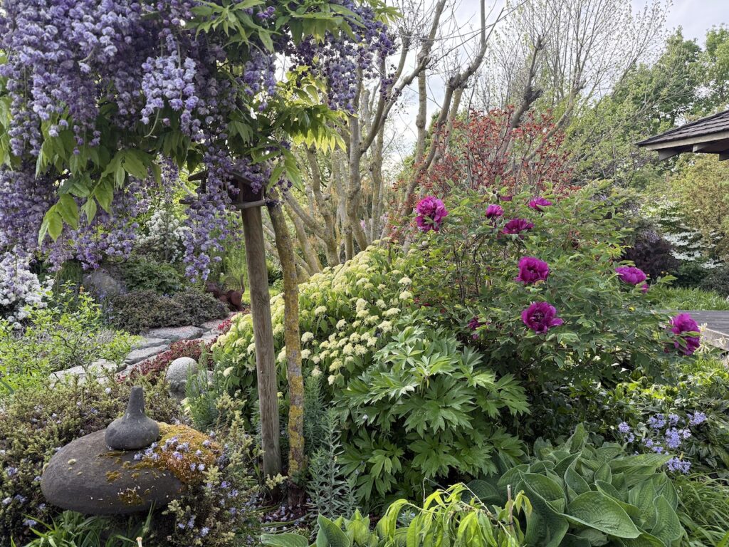 Les floraisons printanières sont alors à leur zénith. Des zones d’ombre au plein soleil, les ambiances s’enchaînent et se répondent au fil des couleurs et des textures. Une attention particulière aux zones de sous-bois où les collections de vivaces rares et de petits rhododendrons mettent en vedette des zones réputées difficiles. Un grand choix de pivoines également !